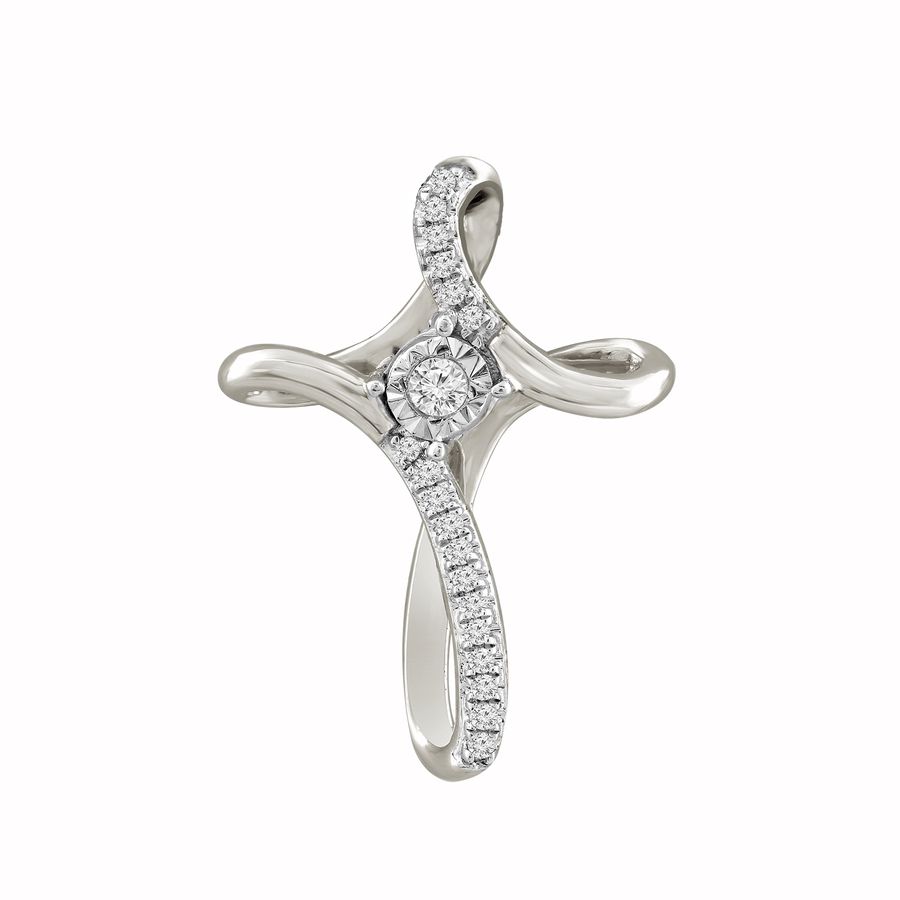 LADIES PENDANT 0.10CT ROUND DIAMOND 10K WHITE GOLD