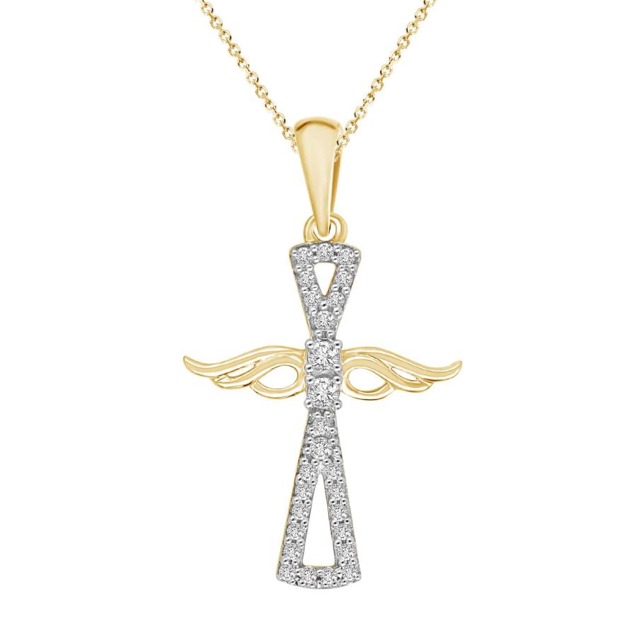 MEN’S CROSS CHARM 1.00CT ROUND/BAGUETTE DIAMOND 10K YELLOW GOLD