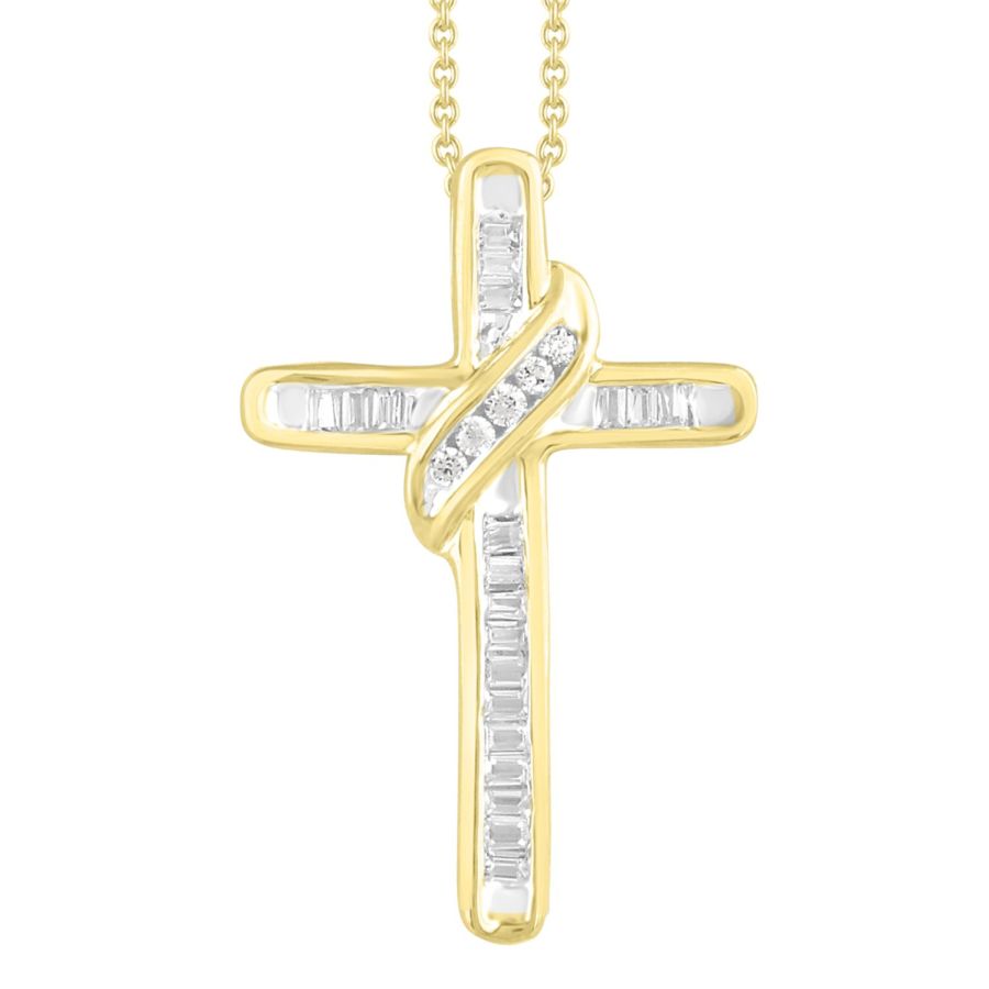 LADIES PENDANT 0.15CT ROUND/BAGUETTE DIAMOND 10K YELLOW GOLD