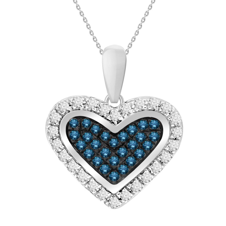 LADIES PENDANT 0.15CT ROUND BLUE DIAMOND 10K WHITE GOLD