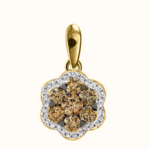 LADIES PENDANT 0.15CT ROUND DARK BROWN DIAMOND 10K YELLOW GOLD
