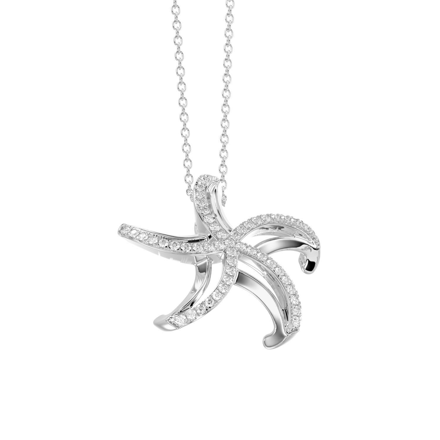 LADIES PENDANT 0.15CT ROUND DIAMOND 14K WHITE GOLD WITH CHAIN