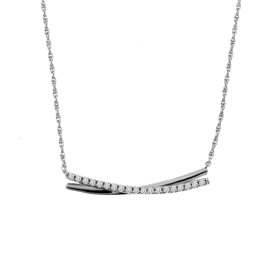 LADIES PENDANT WITH CHAIN 0.25CT ROUND/BAGUETTE DIAMOND 10K WHITE GOLD