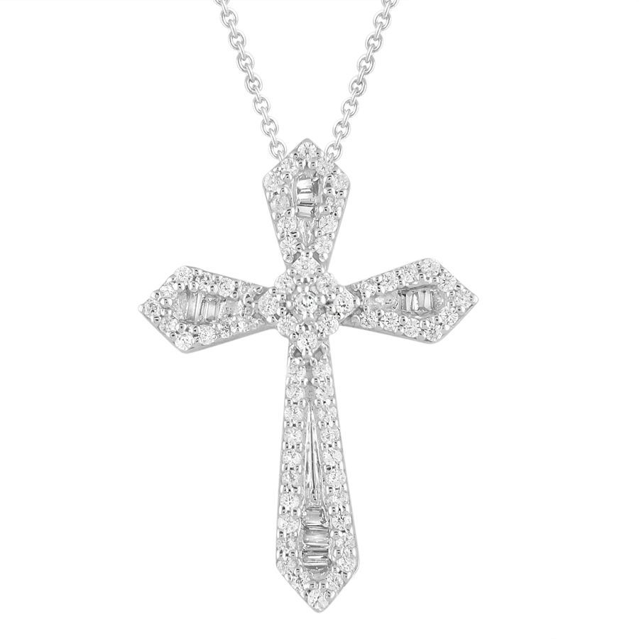 LADIES PENDANT 0.25CT ROUND/BAGUETTE DIAMOND 10K WHITE GOLD