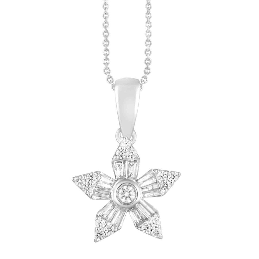 Home Pendants/charms LADIES PENDANT 0.25CT ROUND/BAGUETTE DIAMOND 10K WHITE GOLD
