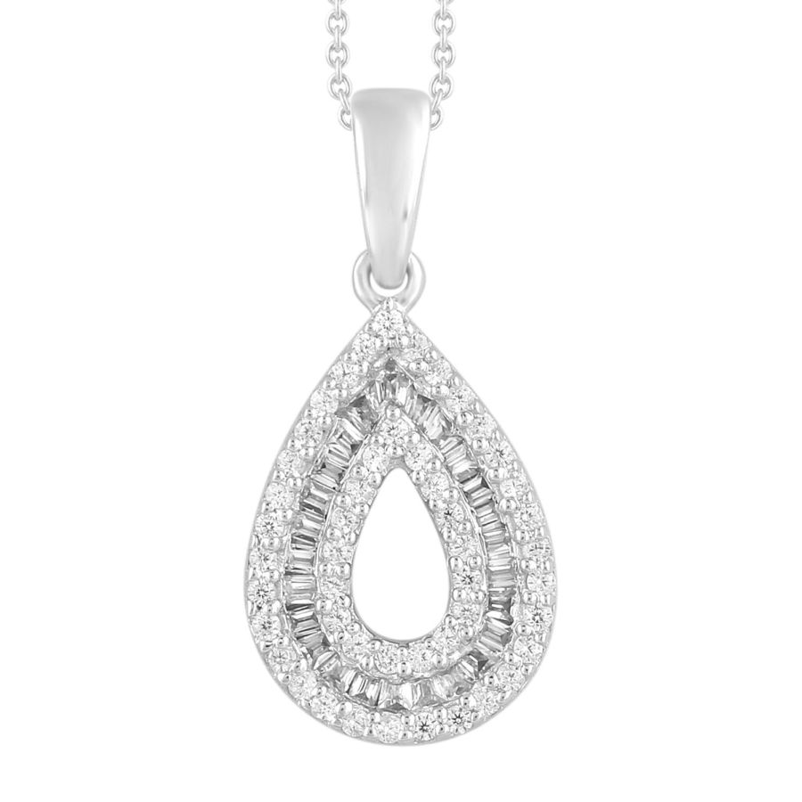 LADIES PENDANT 0.25CT ROUND/BAGUETTE DIAMOND 10K WHITE GOLD