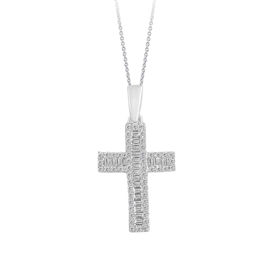 LADIES PENDANT 0.25CT ROUND/BAGUETTE DIAMOND 10K WHITE GOLD