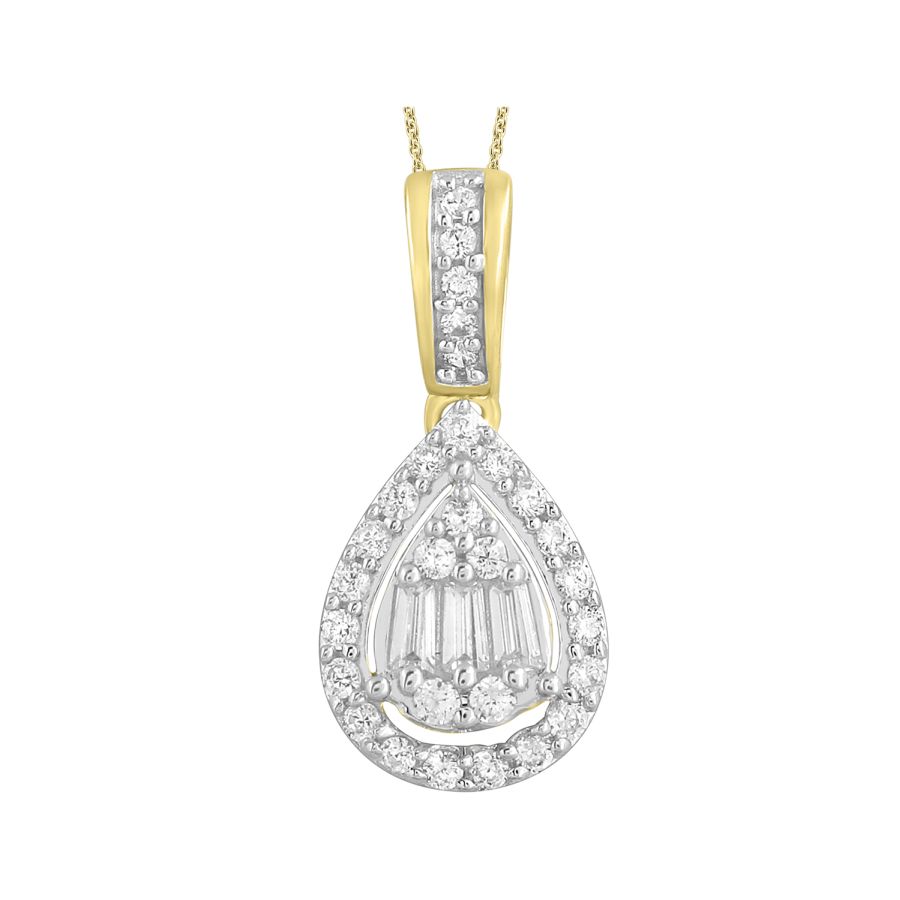 LADIES PENDANT 0.25CT ROUND/BAGUETTE DIAMOND 10K YELLOW GOLD