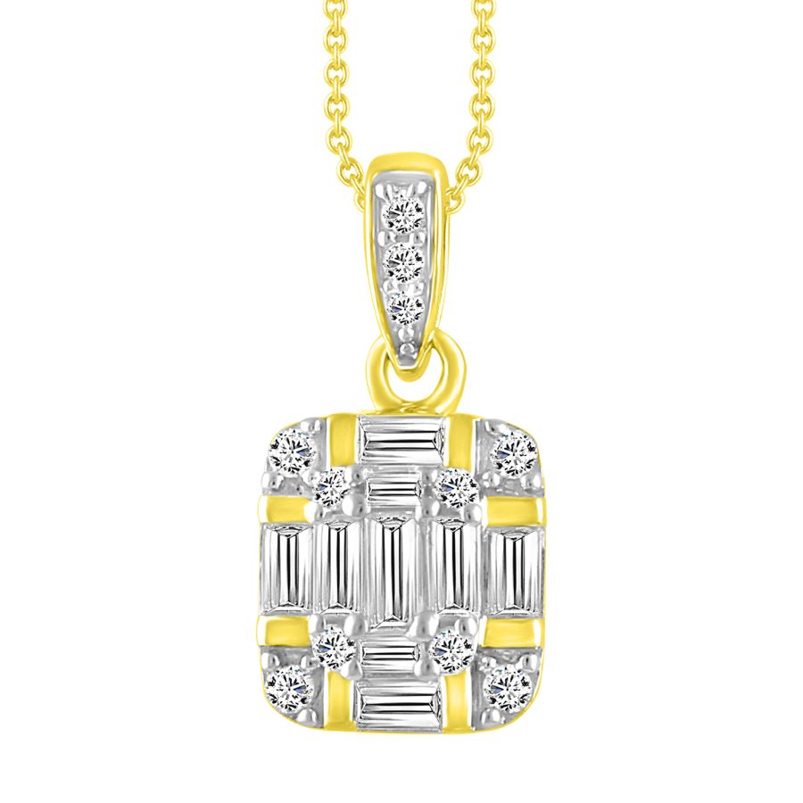 LADIES PENDANT 0.25CT ROUND/BAGUETTE DIAMOND 10K YELLOW GOLD