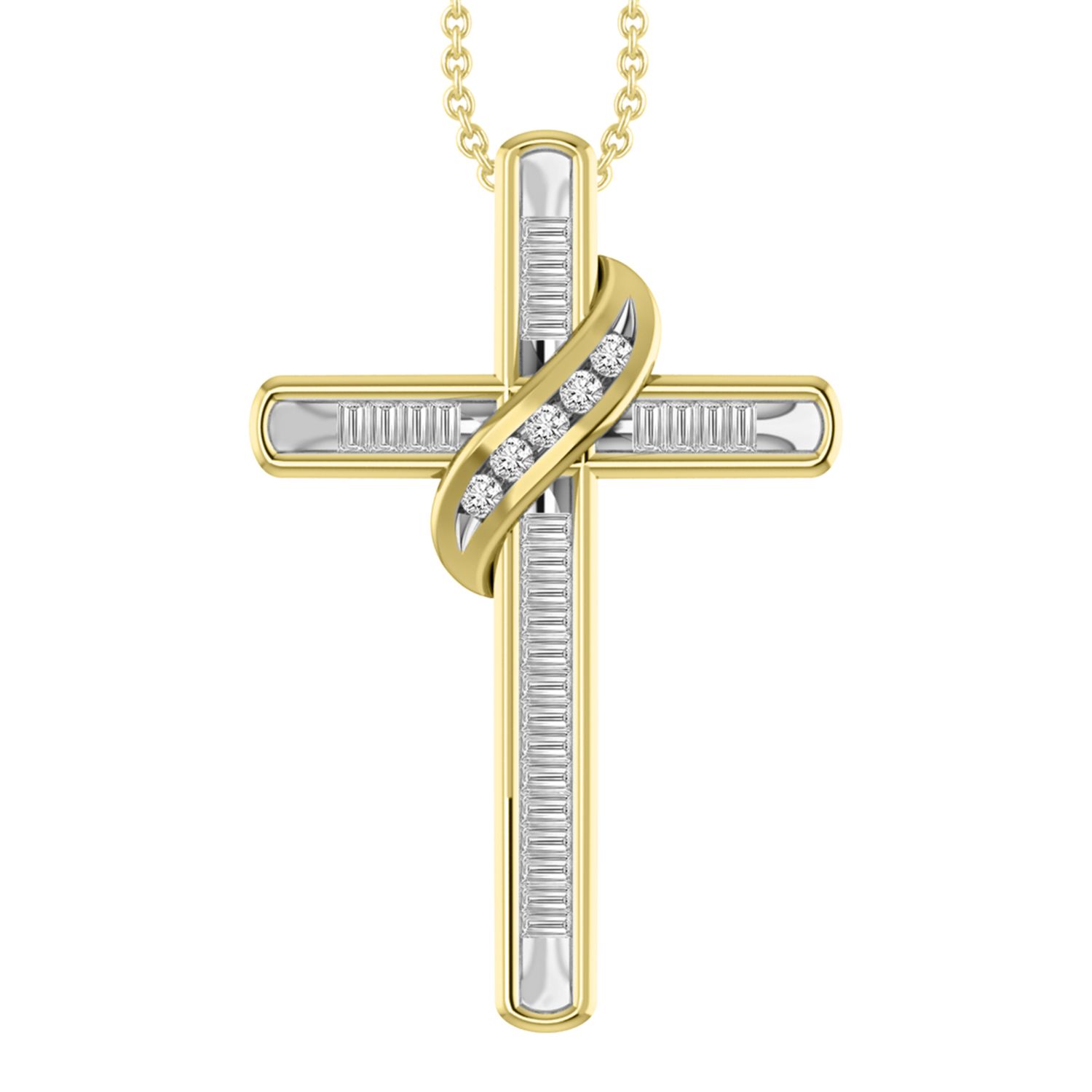 LADIES PENDANT 0.25CT ROUND/BAGUETTE DIAMOND 10K YELLOW GOLD