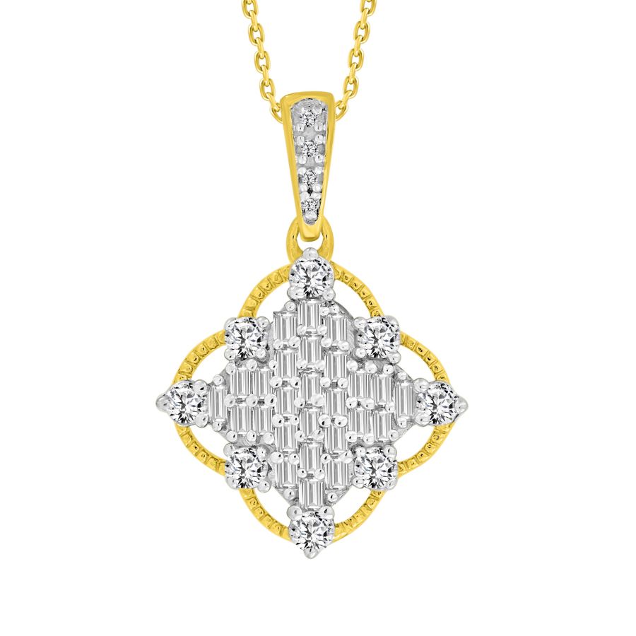 LADIES PENDANT 0.25CT ROUND/BAGUETTE DIAMOND 10K YELLOW GOLD