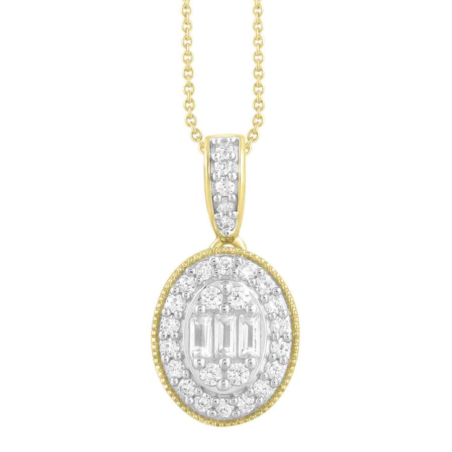 LADIES PENDANT 0.25CT ROUND/BAGUETTE DIAMOND 10K YELLOW GOLD