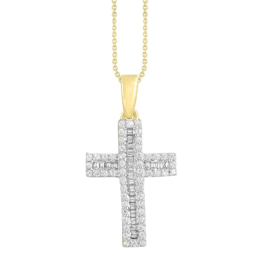 LADIES PENDANT 0.25CT ROUND/BAGUETTE DIAMOND 10K YELLOW GOLD