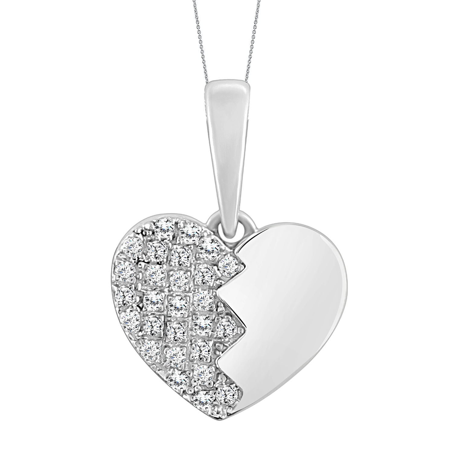 LADIES PENDANT 0.25CT ROUND DIAMOND 14K WHITE GOLD WITH CHAIN