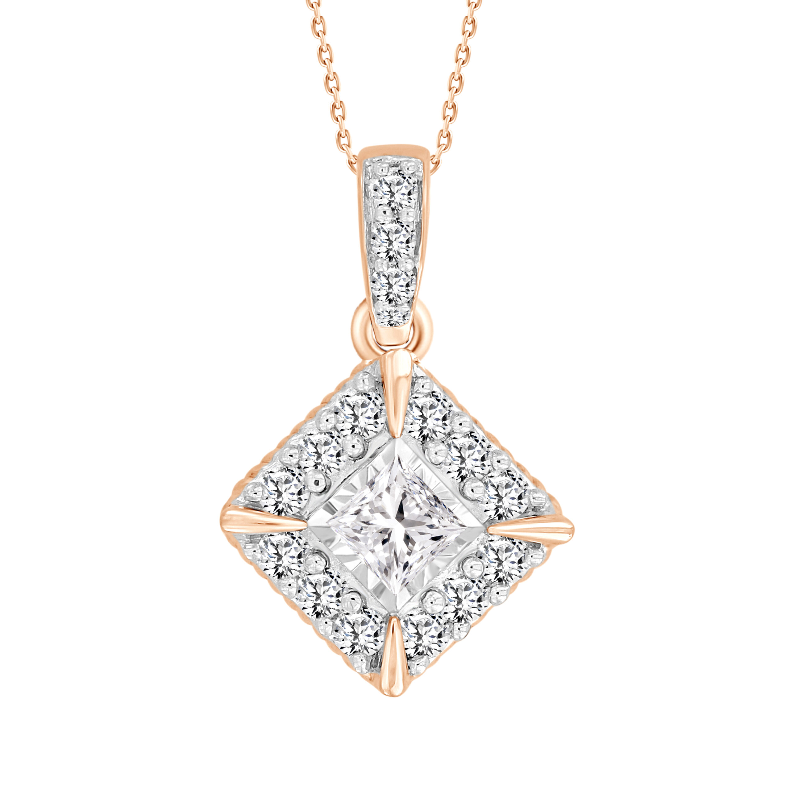LADIES PENDANT 0.25CT ROUND/PRINCESS DIAMOND 10K ROSE GOLD