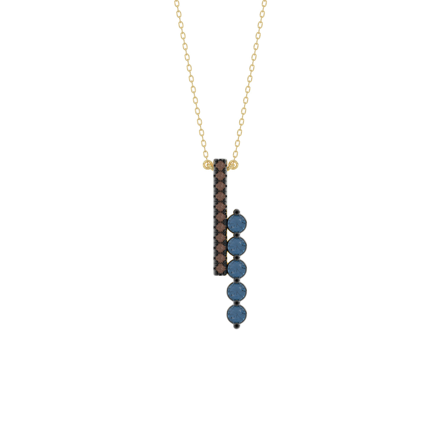 LADIES PENDANT 0.25CT ROUND/ROUND BLUE/DARK BROWN DIAMOND 14K YELLOW GOLD