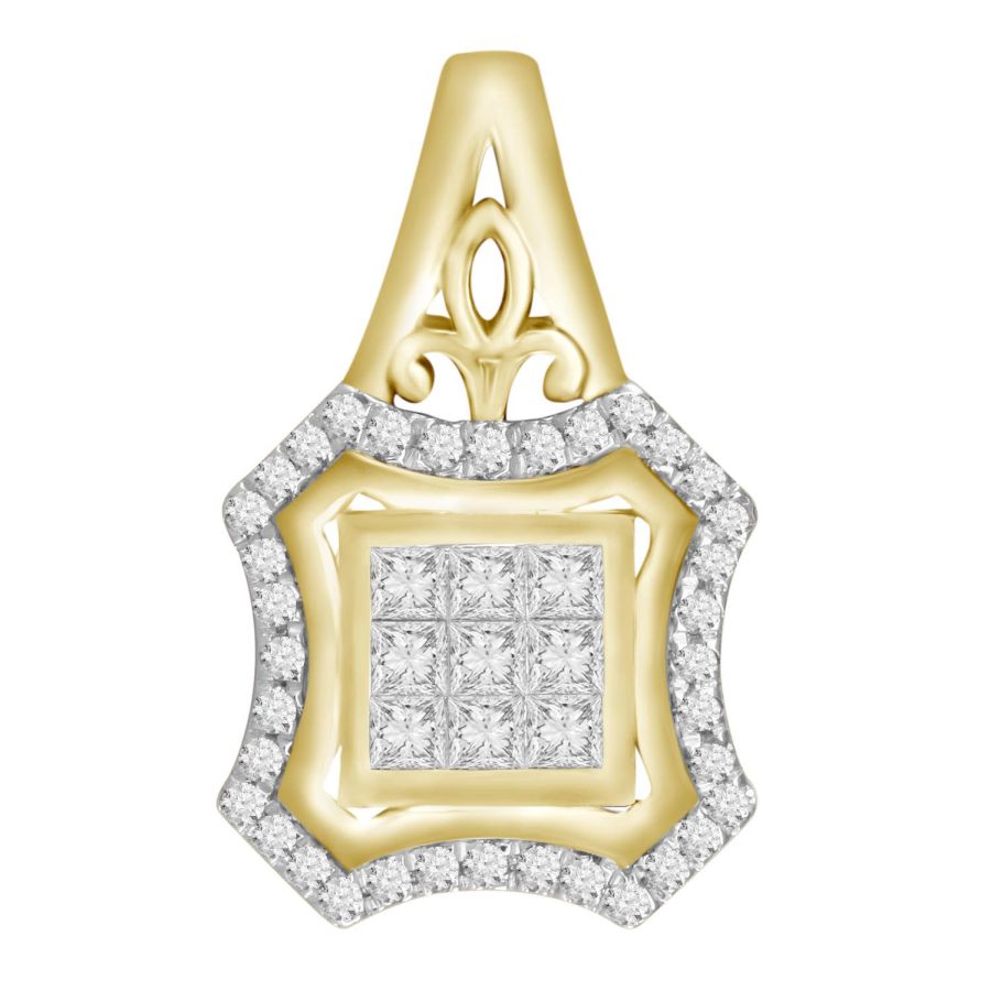 LADIES PENDANT 0.30CT ROUND/PRINCESS DIAMOND 10K YELLOW GOLD