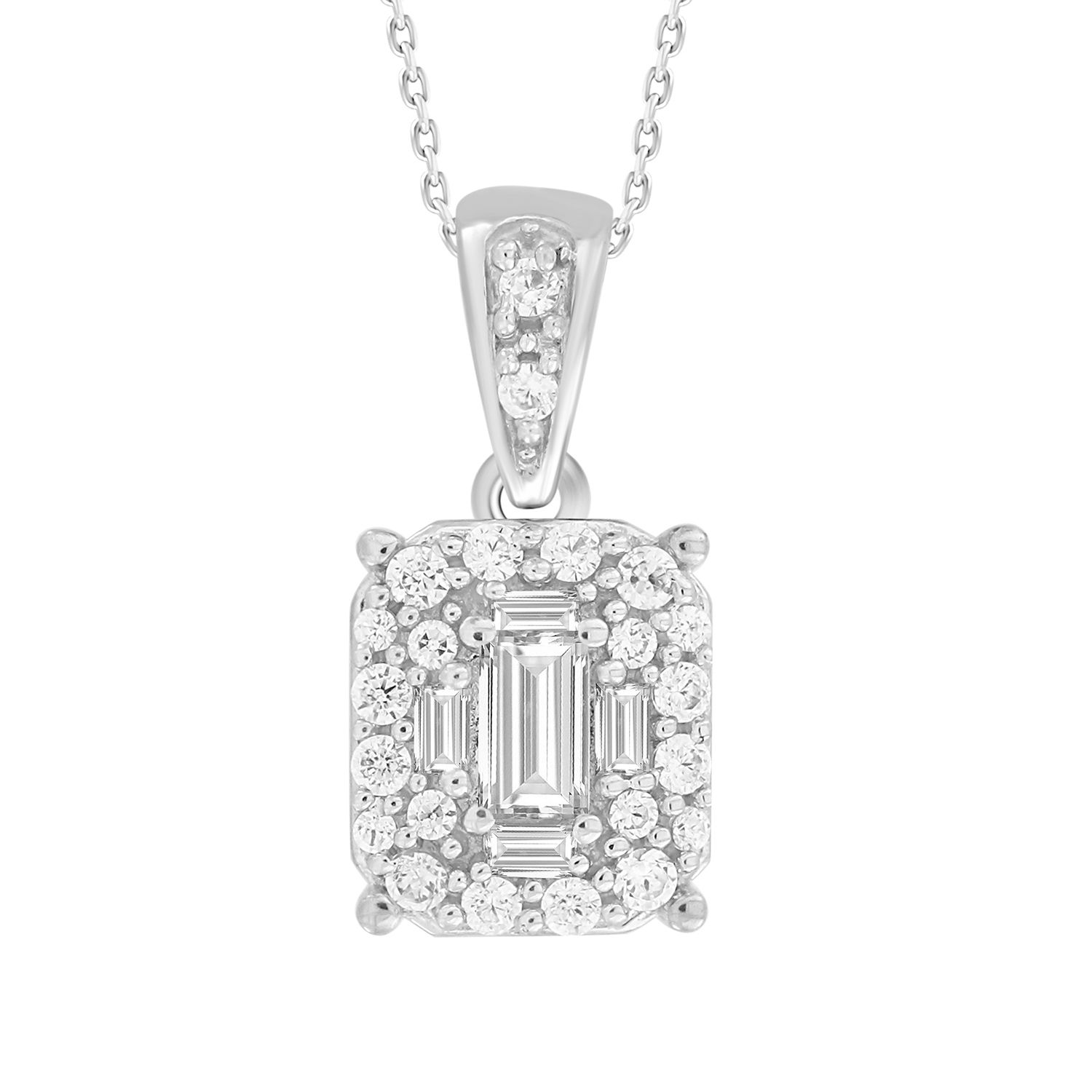 LADIES PENDANT 0.33CT ROUND/BAGUETTE/EMERALD DIAMOND STERLING SILVER/WHITE