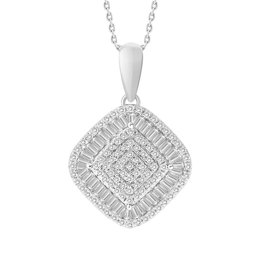 Home Pendants/charms LADIES PENDANT 0.35CT ROUND/BAGUETTE DIAMOND 10K WHITE GOLD