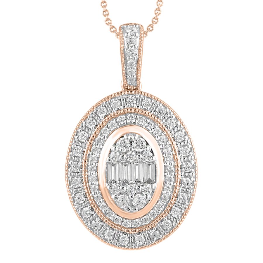 Home Pendants/charms LADIES PENDANT 0.50CT ROUND/BAGUETTE DIAMOND 10K ROSE GOLD