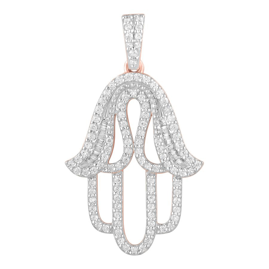 LADIES PENDANT 0.50CT ROUND/BAGUETTE DIAMOND 10K ROSE GOLD