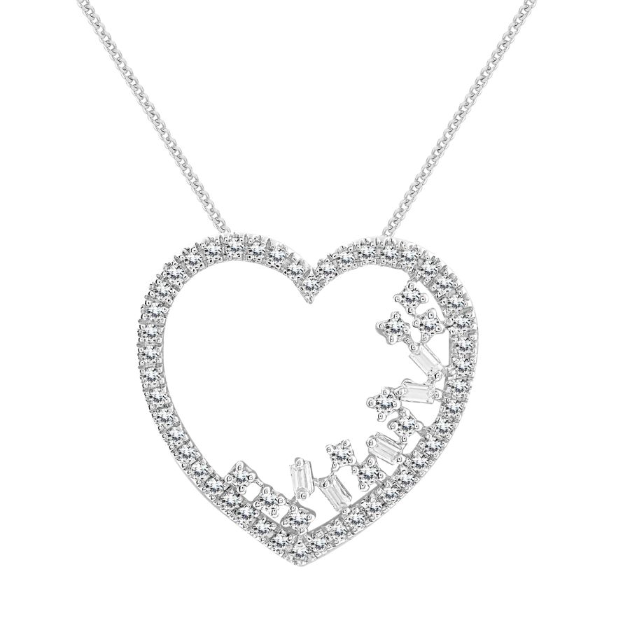 LADIES PENDANT 0.50CT ROUND/BAGUETTE DIAMOND 10K WHITE GOLD