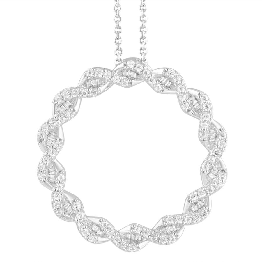 LADIES PENDANT 0.50CT ROUND/BAGUETTE DIAMOND 10K WHITE GOLD