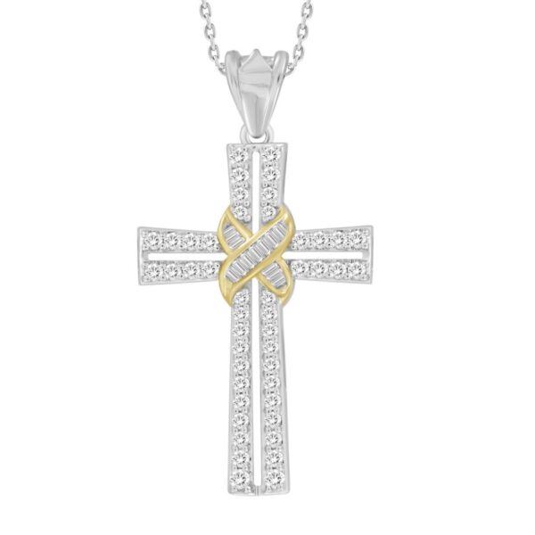 LADIES PENDANT 0.50CT ROUND/BAGUETTE DIAMOND 10K WHITE/YELLOW GOLD