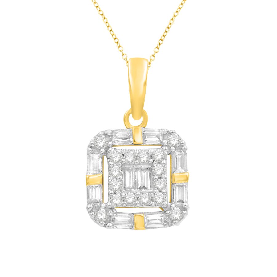 LADIES PENDANT 0.50CT ROUND/BAGUETTE DIAMOND 10K YELLOW GOLD