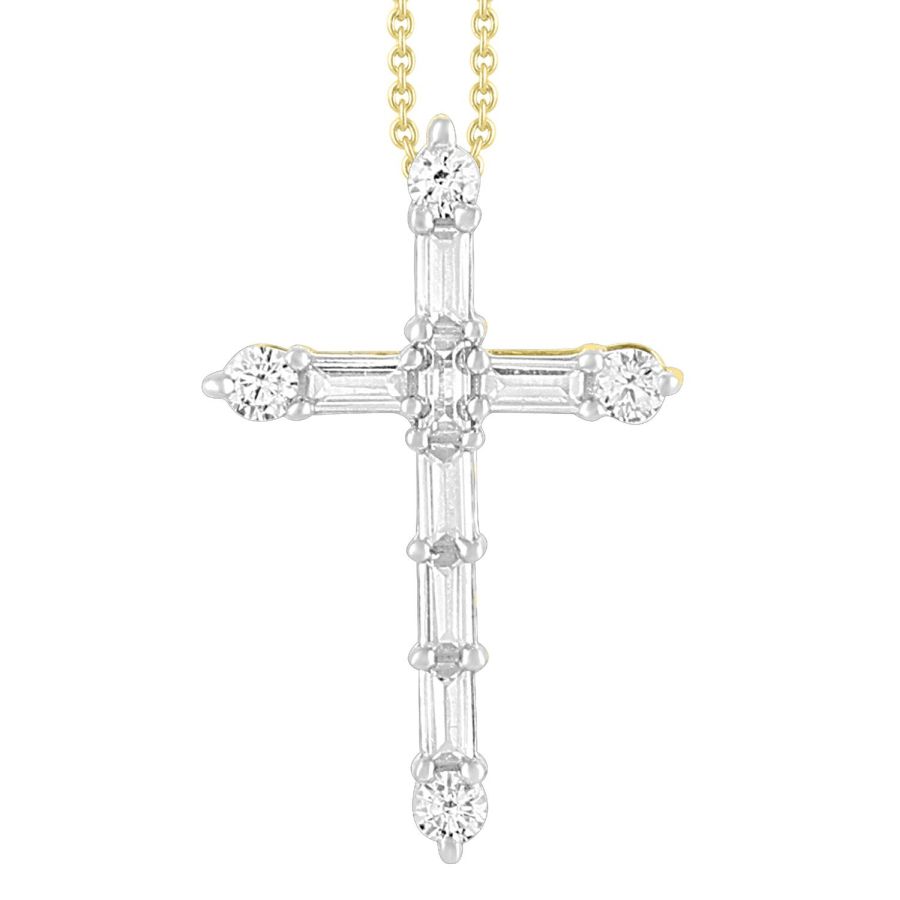 LADIES PENDANT 0.50CT ROUND/BAGUETTE DIAMOND 10K YELLOW GOLD