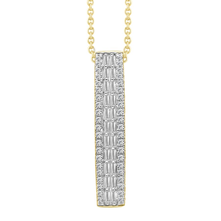 LADIES PENDANT 0.50CT ROUND/BAGUETTE DIAMOND 10K YELLOW GOLD
