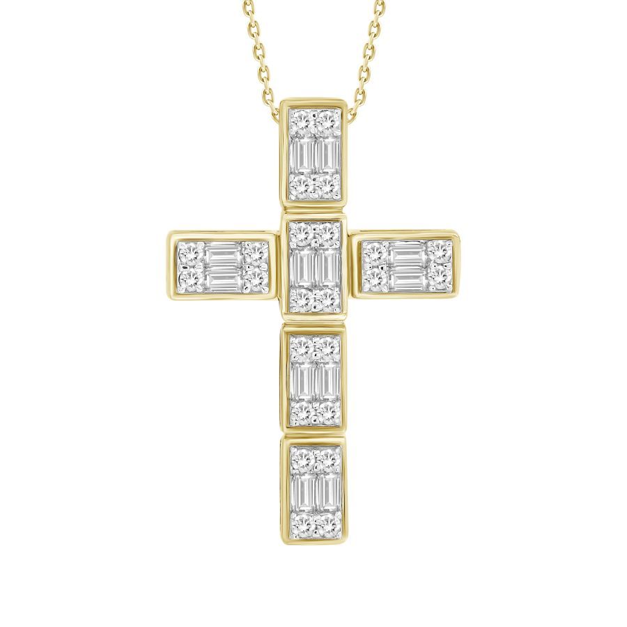 LADIES PENDANT 0.50CT ROUND/BAGUETTE DIAMOND 10K YELLOW GOLD