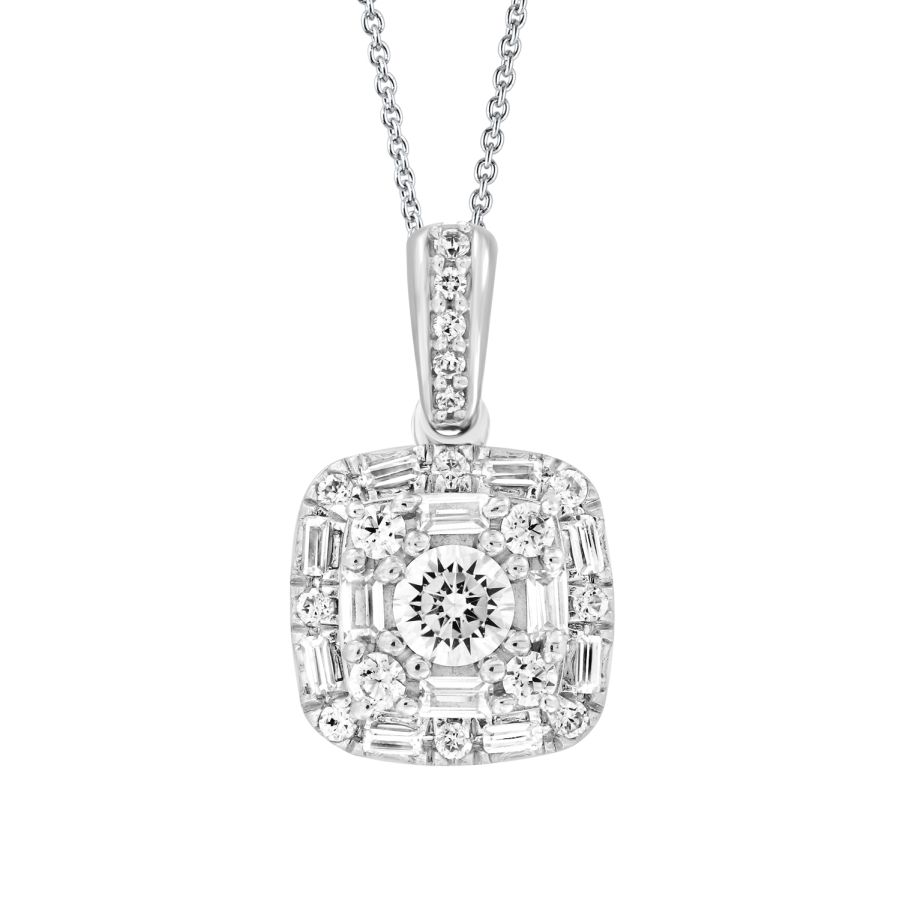 LADIES PENDANT 0.50CT ROUND/BAGUETTE DIAMOND 14K WHITE GOLD