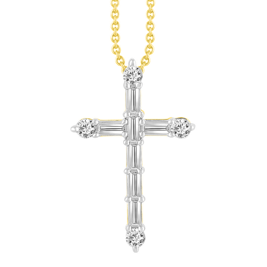 LADIES PENDANT 0.50CT ROUND/BAGUETTE DIAMOND 14K YELLOW GOLD