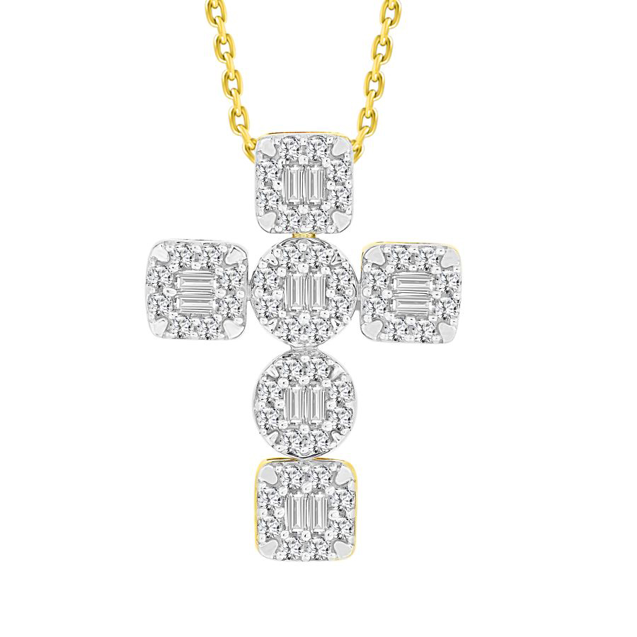 LADIES PENDANT 0.50CT ROUND/BAGUETTE DIAMOND 14K YELLOW GOLD