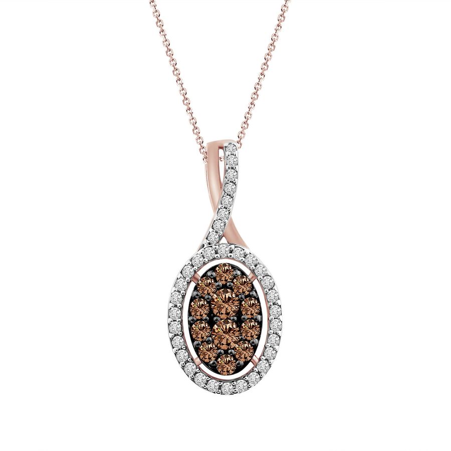 LADIES PENDANT 0.50CT WITH CHAIN DARK BROWN/ROUND DIAMOND 14K ROSE GOLD