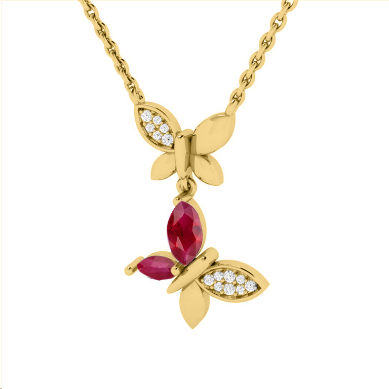 Home Pendants/charms LADIES PENDANT 0.60CT ROUND/MARQUISE/RUBY DIAMOND 14K YELLOW GOLD (CENTER STONE 0.50CT MARQUISE RUBY DIAMOND)