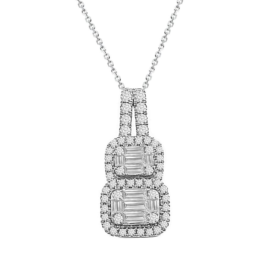 LADIES PENDANT 0.75CT ROUND/BAGUETTE DIAMOND 14K WHITE GOLD