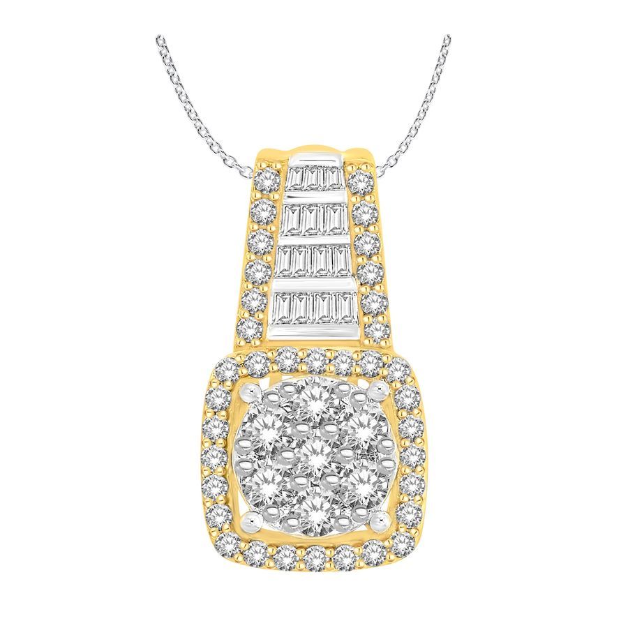 LADIES PENDANT 0.75CT ROUND/BAGUETTE DIAMOND 14K YELLOW GOLD $1,079.99