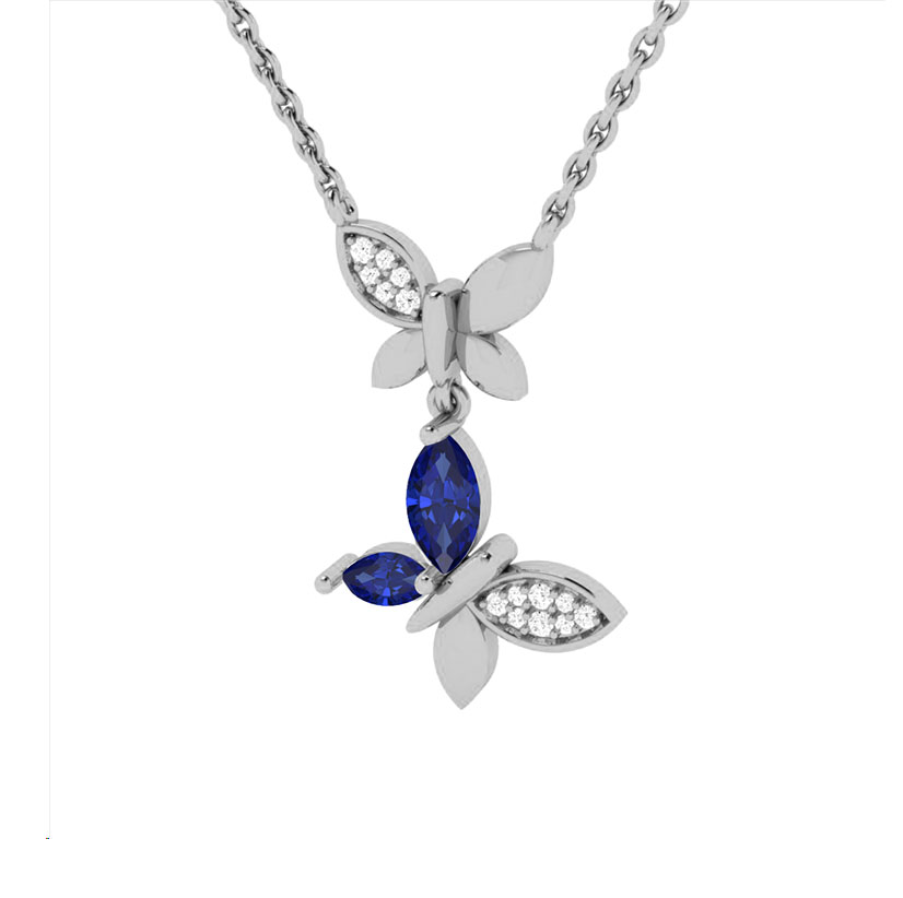 LADIES PENDANT 0.75CT ROUND/MARQUISE/BLUE SAPPHIRE DIAMOND 14K WHITE GOLD (CENTER STONE MARQUISE BLUE SAPPHIRE-0.60CT)