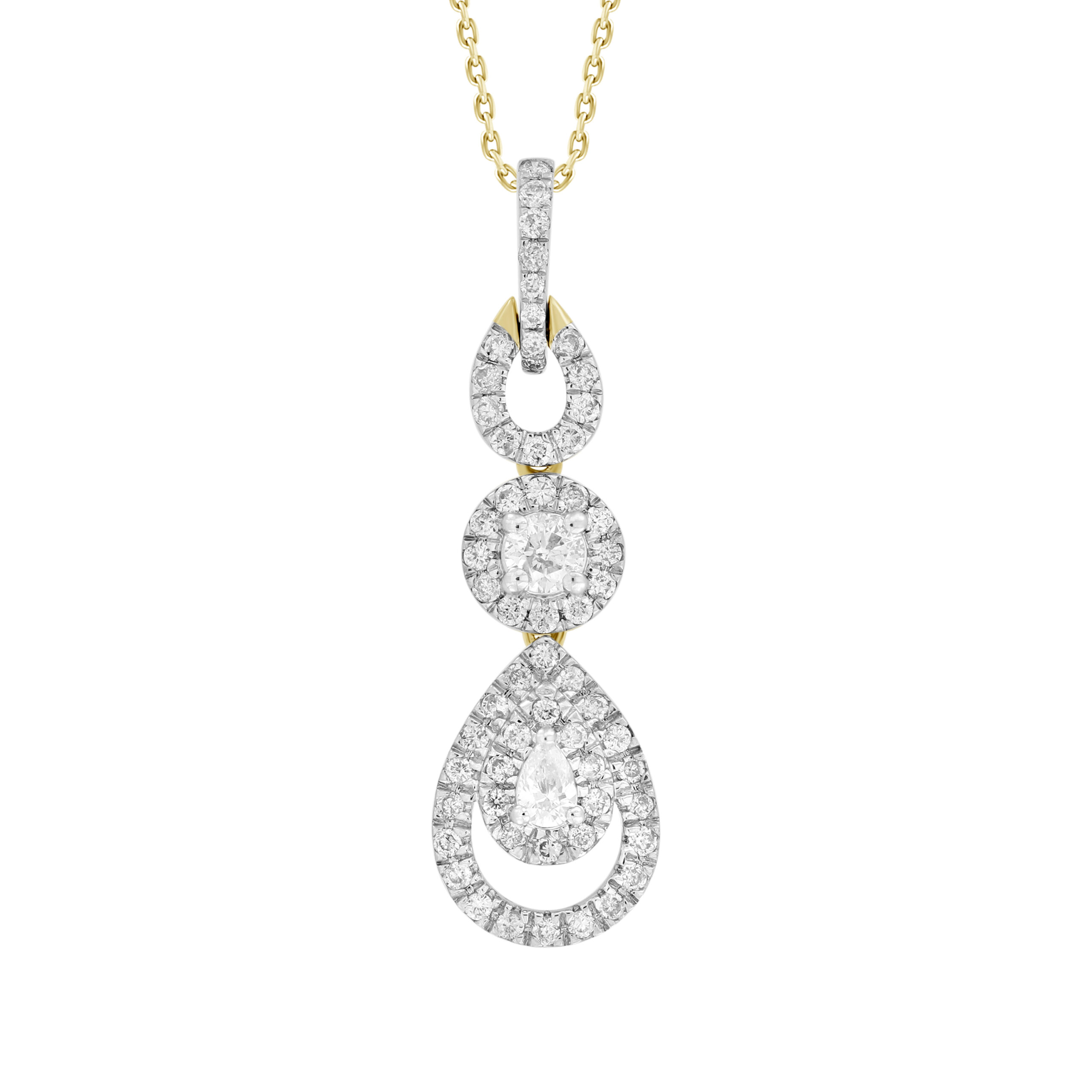 LADIES PENDANT 0.75CT ROUND/PEAR DIAMOND 14K YELLOW GOLD