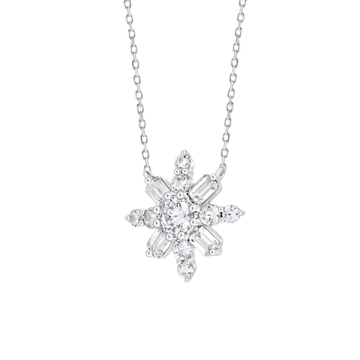 Home Necklaces & Pendants LADIES PENDANT 1 1/2CT ROUND/EMERALD DIAMOND 14K WHITE GOLD WITH CHAIN