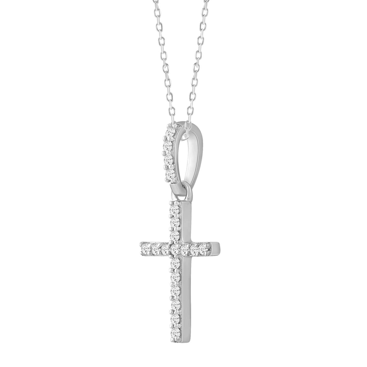 LADIES PENDANT WITH CHAIN 0.05CT ROUND DIAMOND 14K WHITE GOLD