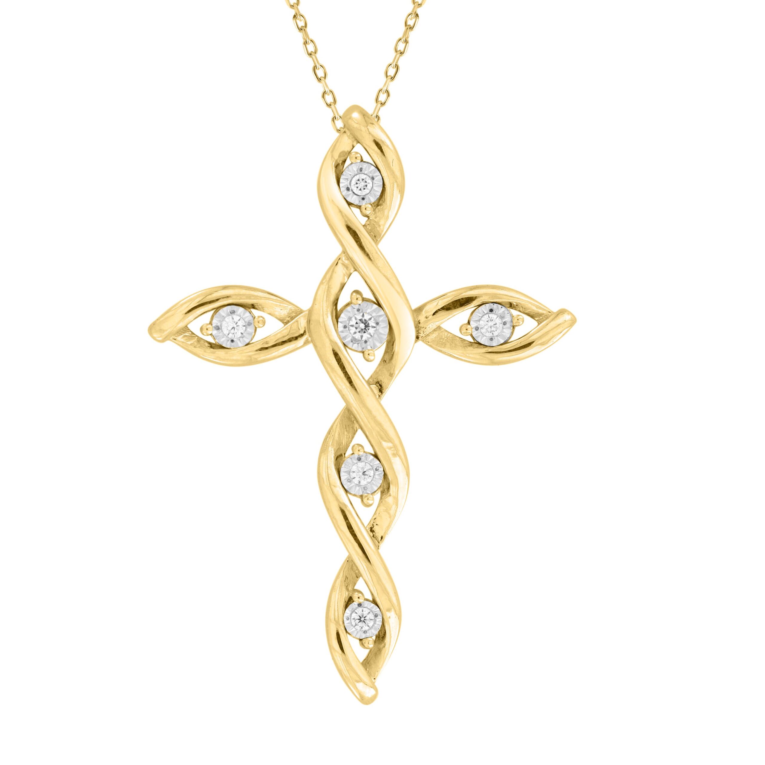 MEN’S CROSS CHARM 1.00CT ROUND DIAMOND 10K YELLOW GOLD