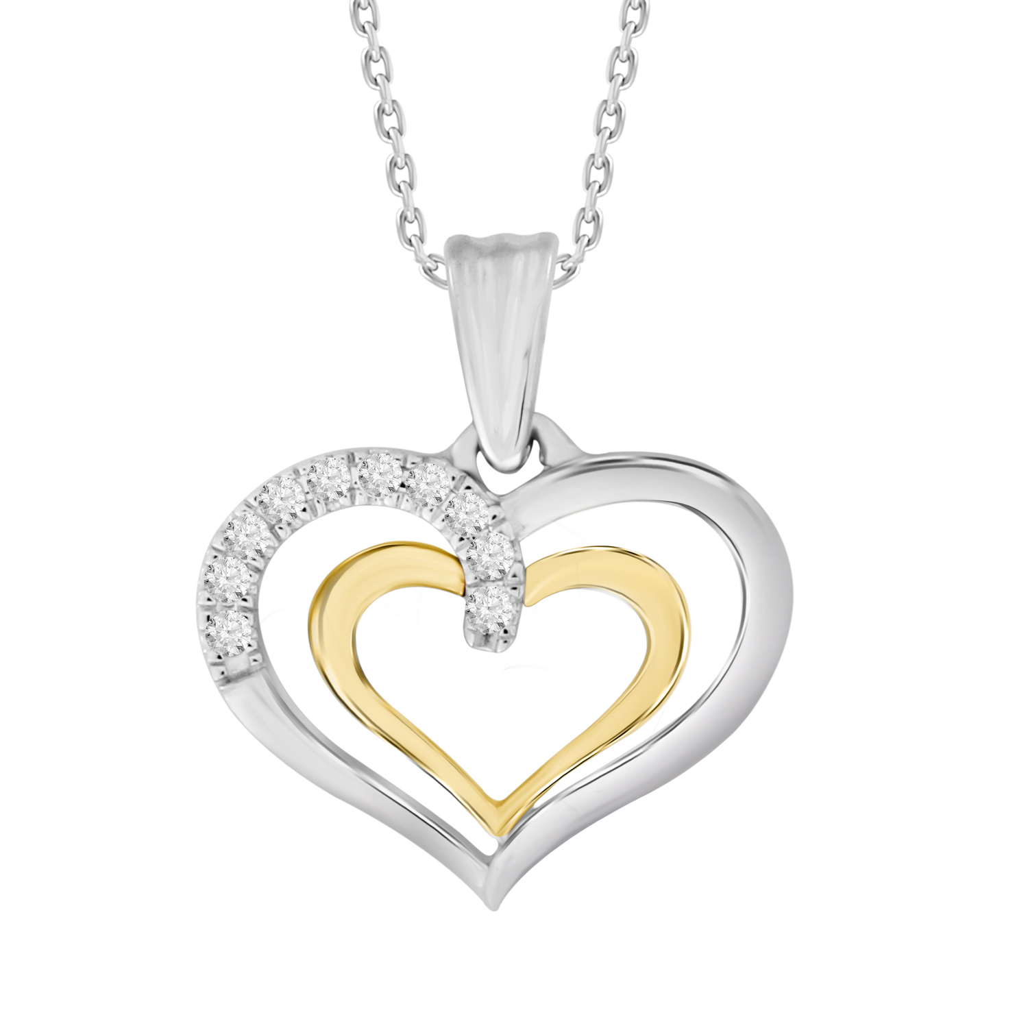 LADIES PENDANT WITH CHAIN 0.10CT ROUND DIAMOND 14K WHITE/YELLOW GOLD