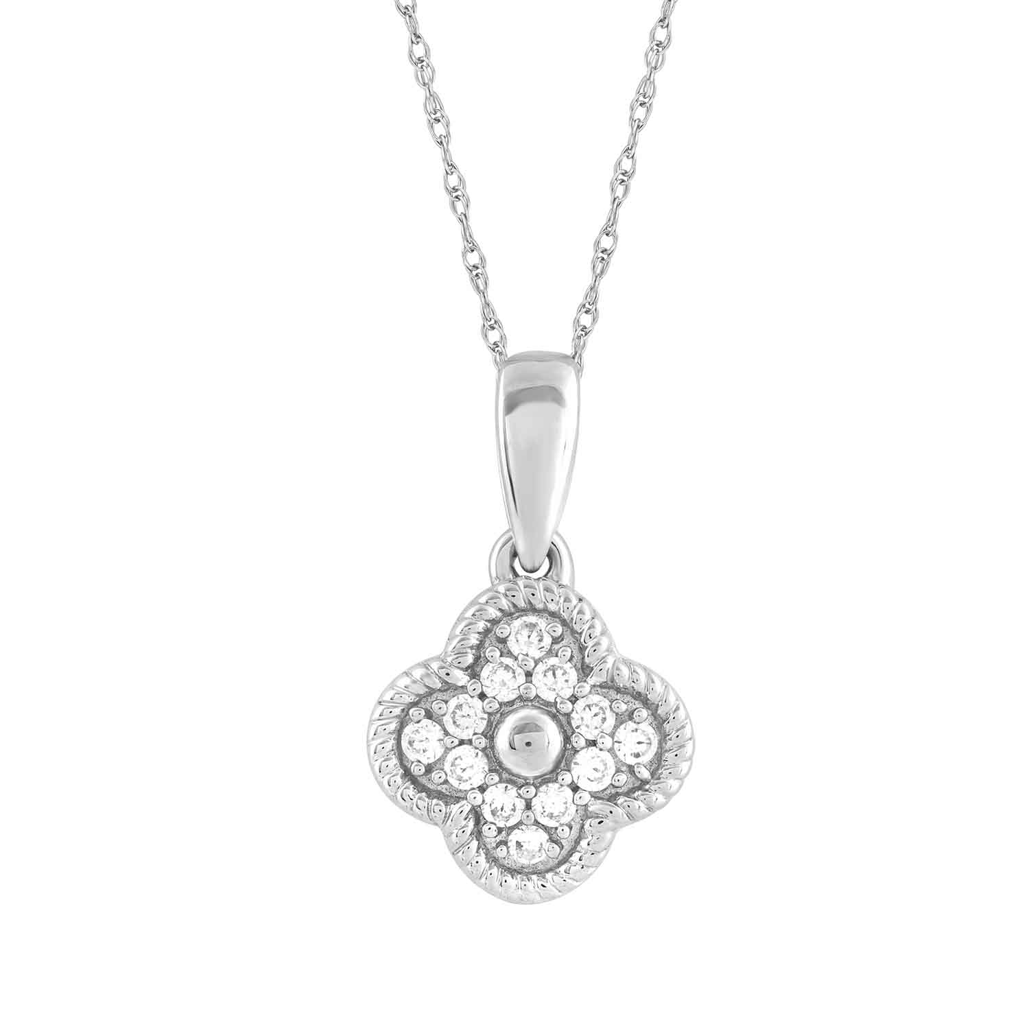 LADIES PENDANT WITH CHAIN 0.15CT ROUND DIAMOND 14K WHITE GOLD