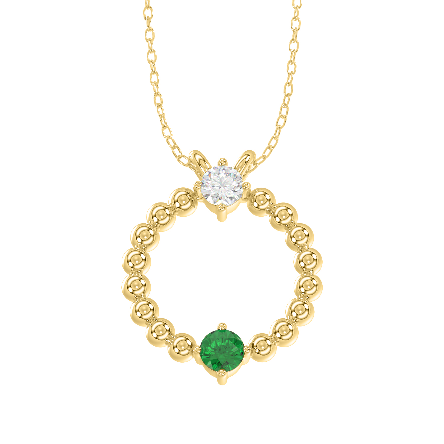 Home Pendants/charms LADIES PENDANT WITH CHAIN 0.15CT ROUND/EMERALD DIAMOND 14K YELLOW GOLD (CENTER STONE ROUND EMERALD -0.10CT)