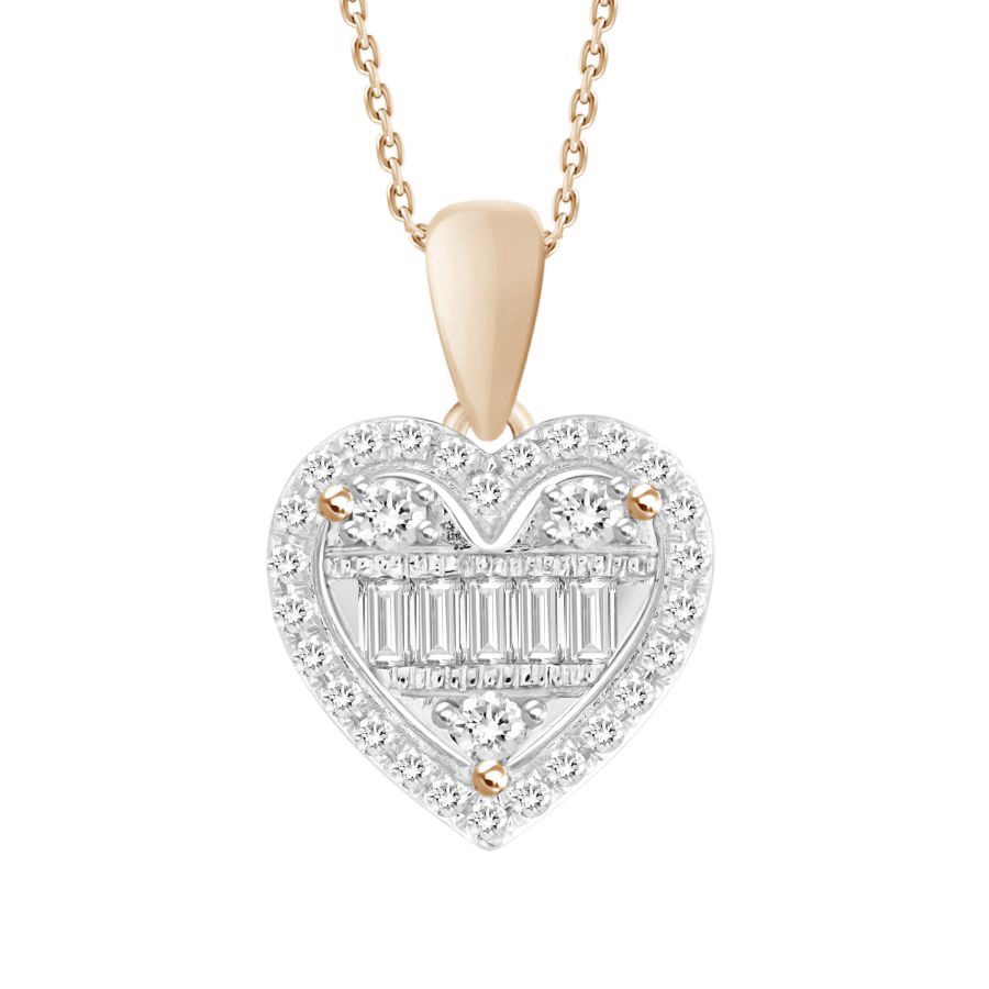 LADIES PENDANT WITH CHAIN 0.20CT ROUND/BAGUETTE DIAMOND 10K ROSE GOLD