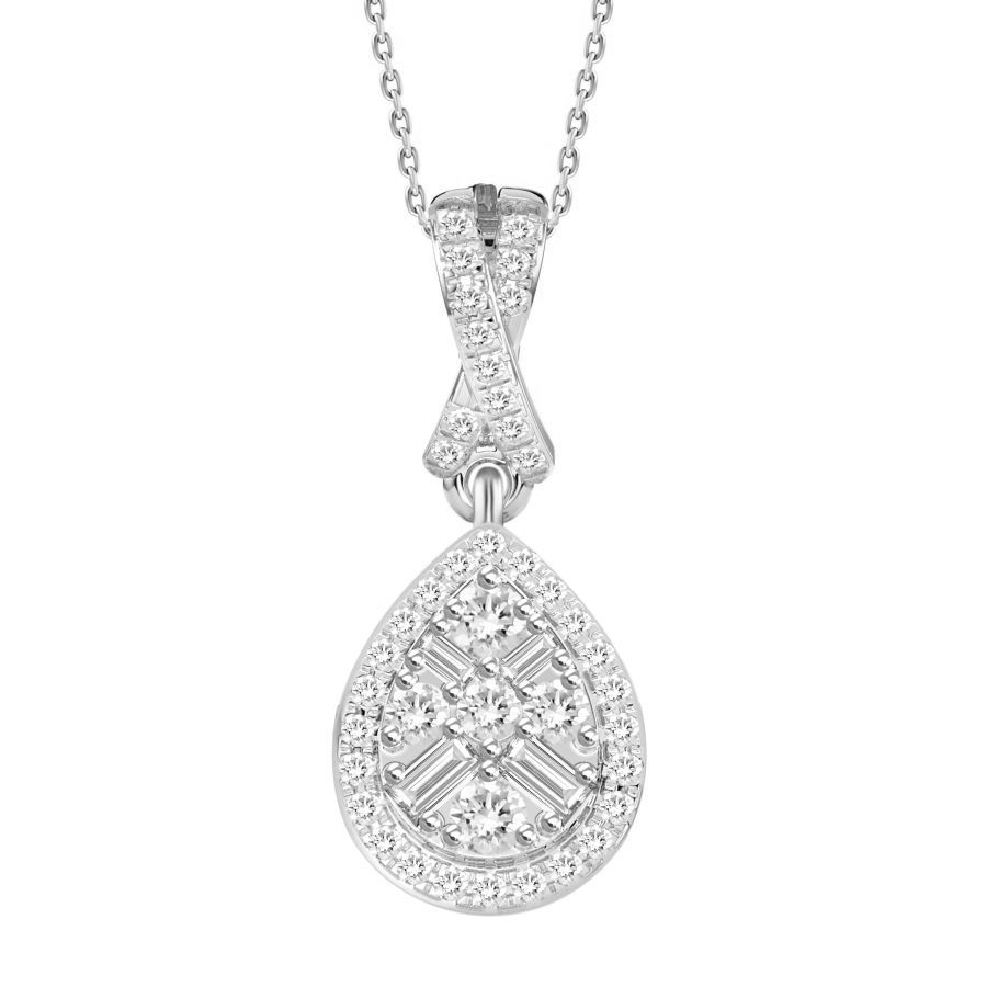 LADIES PENDANT WITH CHAIN 0.20CT ROUND/BAGUETTE DIAMOND 10K WHITE GOLD