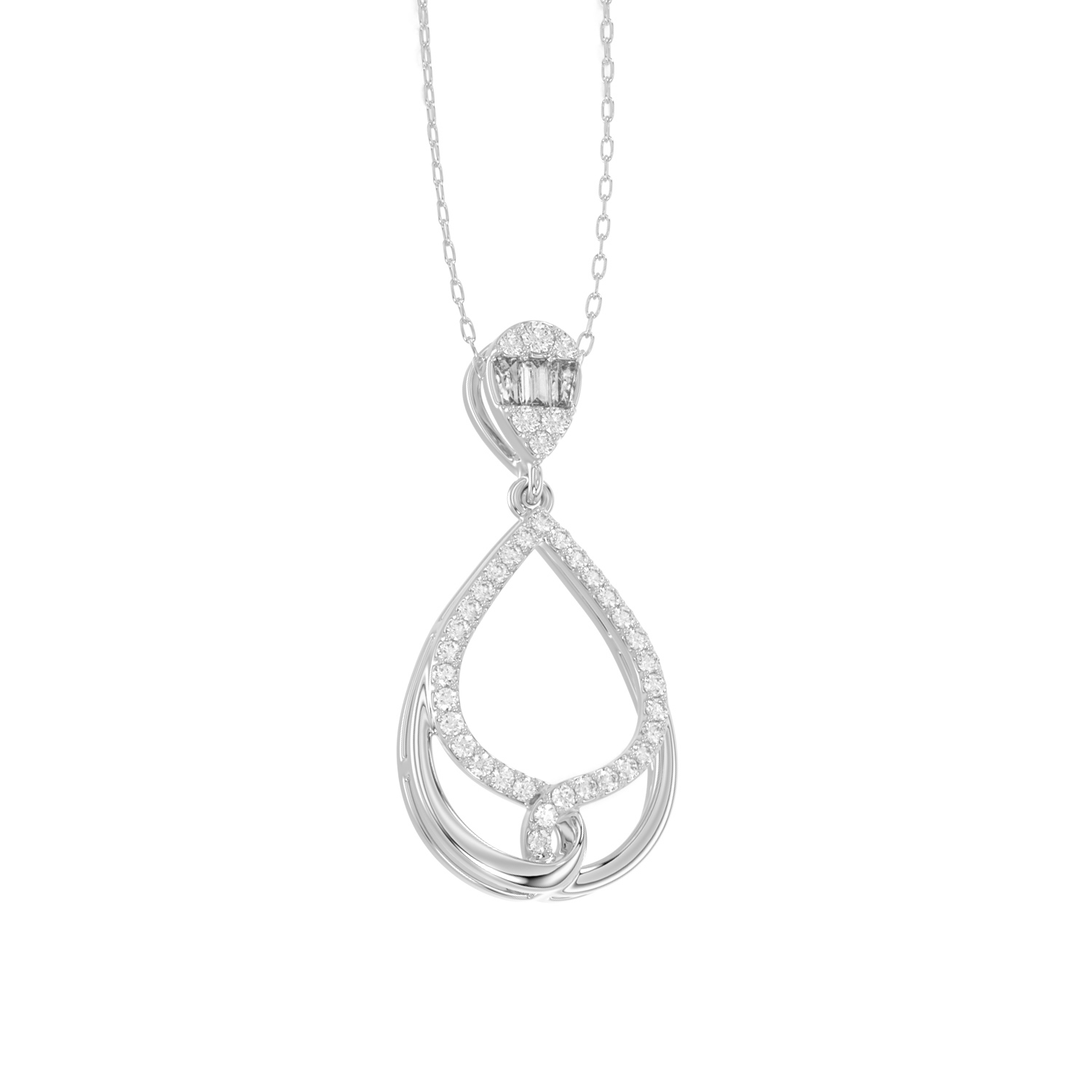 LADIES PENDANT WITH CHAIN 0.20CT ROUND/BAGUETTE DIAMOND 14K WHITE GOLD